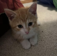 Meet Oz! This orange two month old male kitten is a bundle of playful energy. He is turning into a total lovebug, and enjoys napping on your lap while purring like a motorboat. He is inquisitive and really enjoys helping sweep the floor. He absolutely loves to play with his siblings, and loves playing with wand toys and ball towers. Chasing plastic springs across the wood floor is his new obsession. If you are looking for a sweet and playful kitten, then Oz is the kitten for you!